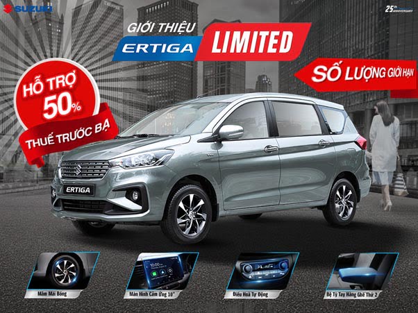 Phiên bản giới hạn của Ertiga được đánh giá tốt trong phân khúc MPV đã được Suzuki cho ra mắt. Các trang bị mới như bộ mâm hợp kim mài bóng thiết kế mới, màn hình cảm ứng 10 inch tích hợp Apple CarPlay, Android Auto, điều hòa tự động và bệ tỳ tay ở hàng ghế thứ 2 được hãng bổ sung theo ý kiến của khách hàng. Khả năng tiết kiệm nhiên liệu vượt trội nhất phân khúc cũng là lợi thế của Ertiga so với đối thủ (4,74L/100 km đường trường).