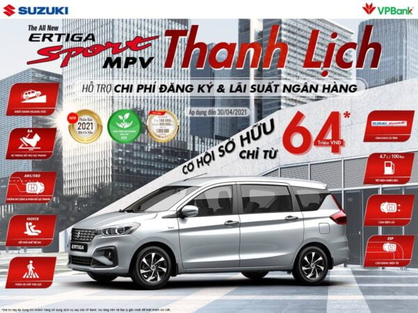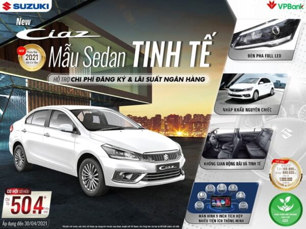 Khách hàng được hỗ trợ lãi suất ngân hàng hoặc chi phí đăng ký khi mua ô tô Suzuki từ ngày 8/4-30/4/2021