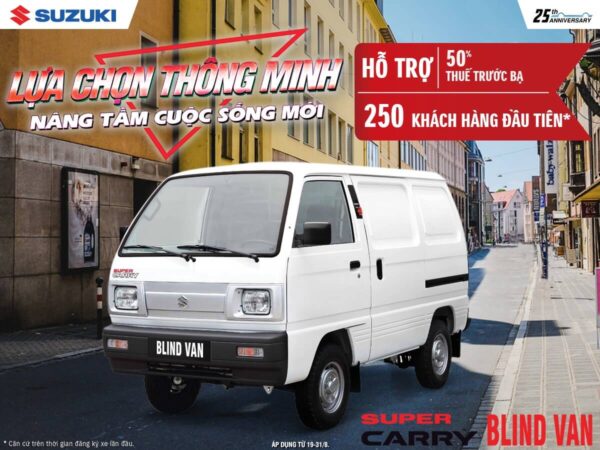 Cùng thể lệ, 250 khách hàng đầu tiên* mua xe tải nhẹ Carry Truck sẽ nhận hỗ trợ 50% thuế trước bạ tương đương 5 triệu đồng và 250 khách hàng đầu tiên* mua Blind Van sẽ nhận hỗ trợ 50% thuế trước bạ tương đương 8 triệu đồng.