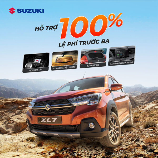 Đối với dòng xe SUV 7 chỗ cho gia đình, Suzuki XL7 cũng được áp dụng ưu đãi 100% lệ phí tương đương 60 triệu đồng. Với phiên bản 2023, bên cạnh mức hỗ trợ 50% lệ phí trước bạ, khách hàng mua xe thời điểm này còn được tặng thêm gói phụ kiện gồm đuôi lướt gió, sạc điện thoại không dây trị giá 5 triệu đồng, giúp gia tăng tính thể thao, thẩm mỹ cho ngoại thất, đồng thời nâng cao trải nghiệm cho các gia đình. Đây là cơ hội lý tưởng để sở hữu xe du lịch Suzuki với nhiều ưu điểm vượt trội về khả năng năng tiết kiệm nhiên liệu, không gian rộng rãi thoải mái cùng mức chi phí sử dụng hợp lý, phục vụ trong những hoạt động vui chơi cuối tuần, trong dịp Tết Trung Thu sắp tới.