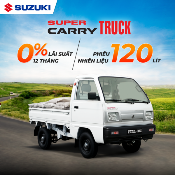 Trong khi đó, dòng xe Carry Truck cực kỳ linh hoạt nhờ sở hữu bán kính vòng quay nhỏ chỉ 4.1m, cực kỳ lý tưởng trong việc vận chuyển hàng hóa, vật liệu ở đô thị đông đúc. Với thùng xe được gia công bằng thép mạ kẽm cùng khung sườn chắc chắn và cabin rộng rãi, Carry Truck đảm bảo khả năng chuyên chở tối ưu với tải trọng lên đến 645kg. Mẫu xe được hỗ trợ 0% lãi suất trong 12 tháng và phiếu nhiên liệu 120 lít, giá trị 20 triệu đồng.