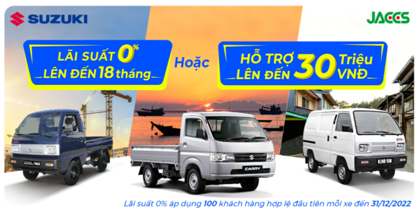 Bên cạnh đó, từ 07/12 – 31/12/2022, Khách hàng có thể chọn gói hỗ trợ ưu đãi lãi suất vay 0% trong 18 tháng đầu tiên khi mua xe Blind Van, Carry Truck và 9 tháng đầu tiên khi mua xe Carry Pro, áp dụng cho gói vay của Công ty Tài chính TNHH MTV Quốc tế Việt Nam JACCS (JIVF) dành cho 100 khách hàng đầu tiên của từng dòng xe (Tổng số khách hàng tham gia chương trình: 300 khách hàng). Tình trạng khó tiếp cận các nguồn vốn vay từ ngân hàng và mức lãi suất tăng cao trong những tháng gần đây khiến không ít khách hàng phải hoãn nhu cầu mua ô tô, ảnh hưởng không ít đến kế hoạch di chuyển và kinh doanh dài hạn. Việc áp dụng Gói ưu đãi lãi suất vay mua xe trong thời điểm hiện tại sẽ là giải pháp tối ưu, không chỉ tạo cơ hội tốt cho các chủ doanh nghiệp để đẩy mạnh công việc kinh doanh, gia tăng lợi nhuận trong dịp lễ, mà còn là ‘cú hích’ cho thị trường ô tô những tháng cuối năm.